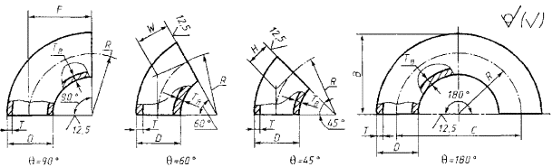 θ = 45°, θ = 60°, θ = 90° и θ = 180°, изготавливаемые из