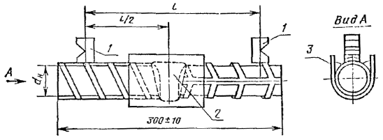 01.01. 1981 г. Несоблюдение стандарта преследуется по закону Настоящий стандарт устанавливает методы ультразвукового контроля качества сварных соединений арматуры, выполняемых при изготовлении, монтаже сборных и возведении монолитных железобетонных конструкций. 1. ОБЩИЕ ПОЛОЖЕНИЯ1.1. Ультразвуковые методы контроля качества сварных соединений, установленные настоящим стандартом, следует применять: для стыковых однорядных соединений стержней диаметром от 20 до 40 мм из арматурной стали классов A-II и A-III по ГОСТ 5781-75, выполненных ванными и многослойными способами сварки в инвентарных формах, на стальных скобах-накладках и подкладках или без формующих и вспомогательных элементов; для тавровых соединений арматурных стержней диаметром от 8 до 40 мм с пластинами (плоскими элементами закладных деталей) толщиною от 6 до 30 мм, выполненных сваркой под флюсом. 1.2. Ультразвуковой контроль следует выполнять при температуре окружающей среды от плюс 40 до минус 25°С. При температуре окружающей среды от минус 10 до минус 25°С следует предварительно нагреть контролируемое соединение до 30-50°С. 1.3. Ультразвуковому контролю подлежат сварные стыковые соединения стержней с отношением диаметров в пределах 0,80-1,0. 1.4. Ультразвуковые методы контроля позволяют выявить внутренние дефекты (трещины, непровары, поры и шлаковые включения) в сварных соединениях без расшифровки их характера и координат. Характеристикой качества соединения служит величина амплитуды прошедшего через сварной шов или отражённого ультразвукового сигнала, которая измеряется в децибелах. 1.5. Контроль сварных соединений следует осуществлять методами: теневым - стыковых соединений стержней, выполненных в инвентарных формах или без формующих вспомогательных элементов (черт.1); 1 - наклонные искатели; 2 - сварное соединение; 3 -
