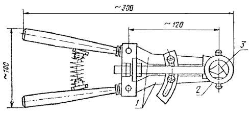 (испытательный образец, выполненный на стальной скобе-накладке); 3 -