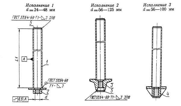 Тип 4 Болты фундаментные съемные Исполнение 1 Исполнение 2 Исполнение 3
