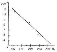 где С — концентрация раствора щелочи, г-экв./л; V2 — объем 0,2 н. раствора щелочи, израсходованный на титрование 1 н. раствора уксусной или соляной кислоты, мл; V1 — объем 0,2 н. раствора щелочи, израсходованный на титрование фильтрата, мл; т — масса пробы, г. 22.5.2 Значение Z принимают как среднее арифметическое трех определений. Разброс в значениях Z при параллельных определениях не должен превышать ± 0,001. 22.5.3 Мк минеральной ваты находят в координатах: модуль кислотности — количество уксусной или соляной кислоты, израсходованное на растворение единицы массы пробы минеральной ваты. 22.6 Построение калибровочного графика 22.6.1 Для построения калибровочного графика из одних и тех же компонентов шихты, взятых в различных соотношениях (10 — 15 вариантов) с таким расчетом, чтобы минимальный Мк шихты отличался от максимального не менее чем на 0,4 — 0,5, получают минеральную вату. 22.6.2 Для каждой пробы минеральной ваты рассчитывают Мк на основании результатов химического анализа по ГОСТ 18866, а количество уксусной или соляной кислоты Z определяют в соответствии с 22.4.2 - 22.5.2. На основании полученных данных строят калибровочный график в координатах (Мк; Z — 10-3). Примеры построения калибровочных графиков приведены в приложении Ж. 22.6.3 При частичной или полной замене на предприятии-изготовителе хотя бы одного компонента шихты, строят новый калибровочный график. ПРИЛОЖЕНИЕ А(рекомендуемое) МЕТОДЫ ИЗМЕРЕНИЯ ЛИНЕЙНЫХ РАЗМЕРОВ МИНЕРАЛОВАТНЫХ И СТЕКЛОВАТНЫХ МАТОВ