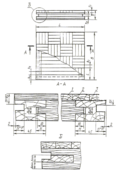 Соединение реек по длине производят на зубчатый шип ГОСТ 19414. В основании паркетных щитов типов ПЩ2 и ПЩ4 допускается соединение