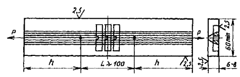 образом, что ширина образца совпадает с толщиной соединения. Испытания
