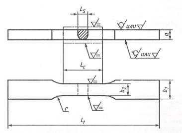 изделие. Ширина образца должна равняться толщине основного металла вблизи шва. 5.5. При исходной толщине