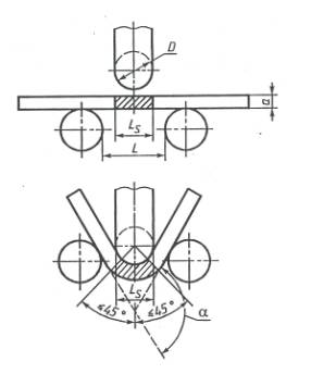 два способа проведения испытаний на изгиб образцов, вырезанных поперек шва из