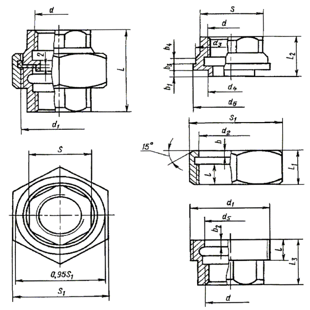 1. Основные размеры гаек должны соответствовать указанным на чертеже и в