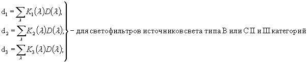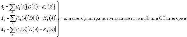 компонентов светофильтра, изменить на постоянное значение ∆DВ или ∆DC в соответствии со следующими формулами: