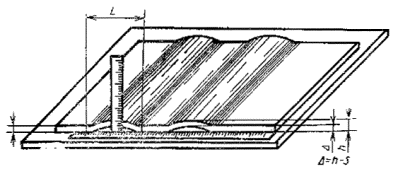 коробоватость и прогиб определяют по наибольшему значению D между плоской поверхностью и нижней