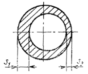 как половина разности наибольшего d1 и наименьшего d2 диаметров в одном поперечном сечении (черт. 12). Измерения проводят микрометром или штангенциркулем и выражают в миллиметрах.