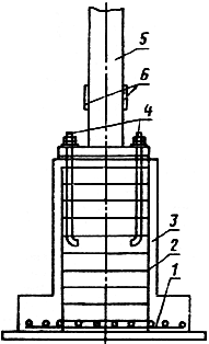 менее двух), соединенные с арматурой фундамента; 5 - стальная колонна; 6