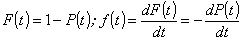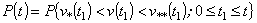 термину "Вероятность безотказной работы" (п. 6.8) Вероятность безотказной работы определяется в предположении, что в начальный момент времени (момент начала исчисления наработки) объект находился в работоспособном состоянии. Обозначим через t время или суммарную наработку объекта (в дальнейшем для краткости называем t просто наработкой). Возникновение первого отказа - случайное событие, а наработка t от начального момента до возникновения этого события - случайная величина. Вероятность безотказной работы Р(t) объекта в интервале от 0 до t включительно определяют как Здесь Р{×} - вероятность события, заключенного в скобках. Вероятность безотказной работы Р(t) является функцией наработки t. Обычно эту функцию предполагают непрерывной и дифференцируемой. Если способность объекта выполнять заданные функции характеризуется одним параметром v, то вместо (1) имеем формулу где v* и v**- предельные по условиям работоспособности значения параметров (эти значения, вообще, могут изменяться во времени). Аналогично вводят вероятность безотказной работы в более общем случае, когда состояние объекта характеризуется набором параметров с допустимой по условиям работоспособности областью значений этих параметров [8]. Вероятность безотказной работы Р(t) связана с функцией распределения F(t) и плотностью распределения f(t) наработки до отказа: Наряду с понятием "вероятность безотказной работы" часто используют понятие "вероятность отказа", которое определяется следующим образом: это вероятность того, что объект откажет хотя бы один раз в течение заданной наработки, будучи работоспособным в начальный момент времени. Вероятность отказа на отрезке от 0 до t определяют по формуле