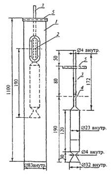 3 - пипетка; 4 - уровень суспензии в цилиндре; 5 - опорная