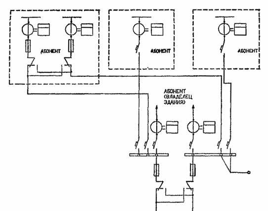 РИС. 4. СХЕМА УЧЕТА ЭЛЕКТРОЭНЕРГИИ В ОБЩЕСТВЕННЫХ ЗДАНИЯХ С НЕСКОЛЬКИМИ ПОТРЕБИТЕЛЯМИ