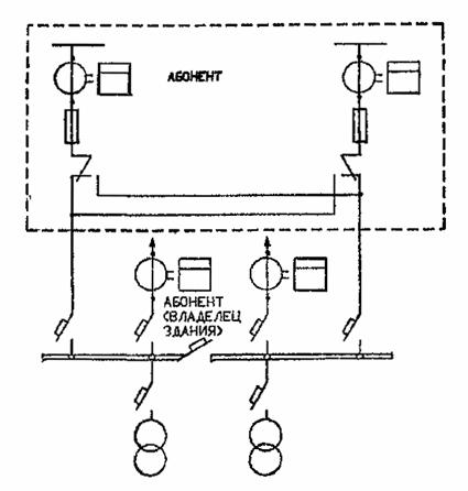 РИС. 5. СХЕМА УЧЕТА ЭЛЕКТРОЭНЕРГИИ В ОБЩЕСТВЕННЫХ ЗДАНИЯХ ПРИ ВСТРОЕННОЙ ТП