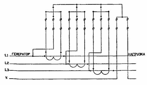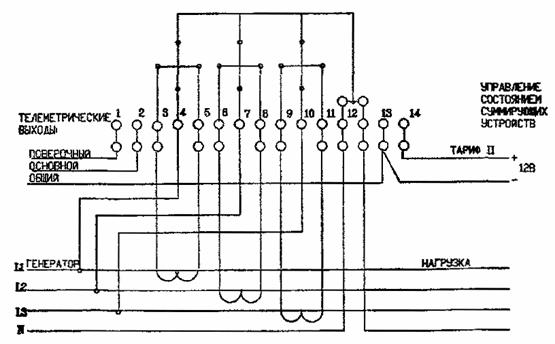 РИС. 14. ВКЛЮЧЕНИЕ ТРЕХФАЗНЫХ СЧЕТЧИКОВ ТИПА ПСЧ, ПСЧ-ЗМ,