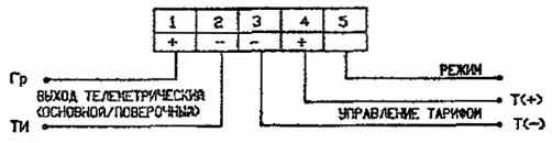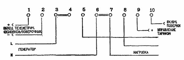 Примечание. В одно-тарифном счетчике зажим 14 отсутствует, и линии управления тарифом П не подводятся. РИС.