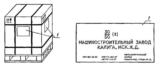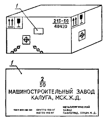 объединения. 7.9 Знак № 12 наносят на шесть сторон упаковки на месте проекции фактического центра тяжести груза. Если форма и размеры упаковки не позволяют нанести знак № 12 на шесть сторон упаковки, допускается наносить знак на меньшее количество сторон, но не менее двух. 7.10 Транспортную маркировку наносят на русском языке и иностранном, указанном в заказе-наряде внешнеторгового объединения (см. пример в приложении Д). При длине или ширине тары до 1 м допускается маркировку наносить на одной из сторон на языке, указанном в заказе-наряде. 7.11 На ящиках или другой таре, имеющей форму параллелепипеда, маркировку наносят на торцовую и боковую стенки. На грузовых местах, имеющих форму цилиндра, маркировку наносят на основаниях. Если размеры и конструкция тары не позволяют разместить необходимую маркировку на боковой и торцовой стенках, то маркировку располагают на торцовой и боковой стенках и на крышке. 8 МАРКИРОВКА, ХАРАКТЕРИЗУЮЩАЯ ТРАНСПОРТНУЮ ТАРУ8.1 Содержание маркировки, характеризующей тару: товарный знак и (или) наименование предприятия-изготовителя; номер тары по нормативному документу; обозначение нормативного документа; экологический
