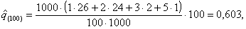 Задаваясь доверительной вероятностью g=0,95 можно построить доверительные интервалы для величин q(100) и qн, поскольку