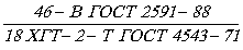 электрошлакового переплава. 2. (Исключен, Изм. № 2). 1.2. В зависимости от основных легирующих элементов сталь делится на группы: хромистая, марганцовистая, хромомарганцовая, хромокремнистая, хромомолибденовая и хромомолибденованадиевая, хромованадиевая, никельмолибденовая, хромоникелевая и хромоникелевая с бором, хромокремнемарганцовая и хромокремнемарганцовоникелевая, хромомарганцовоникелевая и хромомарганцовоникелевая с титаном и бором, хромоникельмолибденовая, хромоникельмолибденованадиевая и хромоникельванадиевая, хромоалюминиевая и хромоалюминиевая с молибденом, хромомарганцовоникелевая с молибденом, хромомарганцовоникелевая с молибденом и титаном. (Измененная редакция, Изм. № 3). 1.3. По видам обработки прокат делят на: горячекатаный и кованый (в том числе с обточенной или ободранной поверхностью); калиброванный; со специальной отделкой поверхности. 1.4. В зависимости от качества поверхности горячекатаный и кованый прокат изготовляют групп: 1, 2, 3. 1.5. По состоянию материала прокат изготовляют: без термической обработки; термически обработанный - Т; нагартованный - Н (для калиброванного и со специальной отделкой поверхности проката). 1.3 - 1.5 (Измененная редакция, Изм. № 5). 2а. СОРТАМЕНТ.2а.1. Сортамент проката должен соответствовать требованиям ГОСТ 2591-88, ГОСТ 2590-88, ГОСТ 2879-88, ГОСТ 103-76. ГОСТ 1133-71, ГОСТ 7417-75, ГОСТ 8559-75, ГОСТ 8560-78, ГОСТ 14955-77 и другой нормативно-технической документации. (Измененная редакция, Изм. № 5). Примеры условных обозначений Прокат горячекатаный, квадратный, со стороной квадрата 46 мм, обычной точности прокатки В по ГОСТ 2591-88, марки 18ХГТ, группы качества поверхности 2, термически обработанный Т: Квадрат