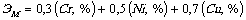где Cr, Ni, Cu - остаточная массовая доля хрома, никеля и меди, не