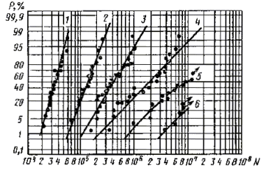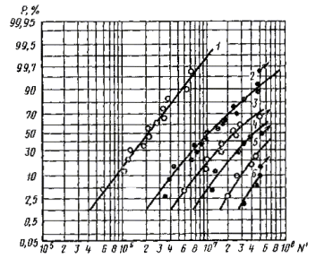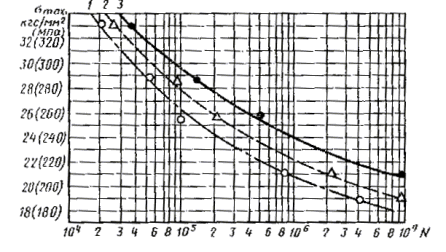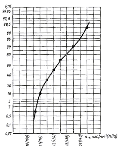 варьирования предела выносливости делят на 10 интервалов по 0,5 кгс/мм2