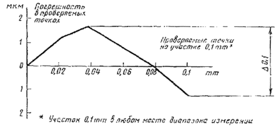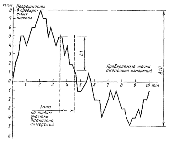 самой высокой и самой низкой точек кривой погрешностей индикатора с диапазоном