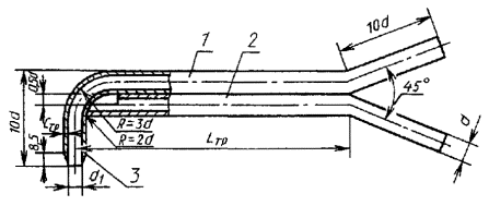 менее 4 м/с. 1. СРЕДСТВА ИЗМЕРЕНИЙ, РЕАКТИВЫ, ОБОРУДОВАНИЕТрубки напорные конструкции НИИОГАЗ (черт. 1). Напорная трубка