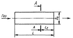 устанавливается согласно черт. 3. L - длина прямого участка газохода, кратная De,; А-А - измерительное сечение; Lz - длина прямого участка газохода за измерительным сечением, кратная De Черт. 2 2.3. Минимальная длина прямого участка газохода (L)