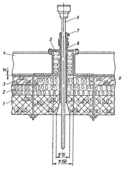 штампованной панели; 7 - прокладки из огнеупорного войлока; 8 - монтажный болт;
