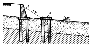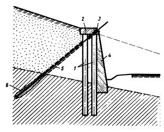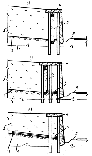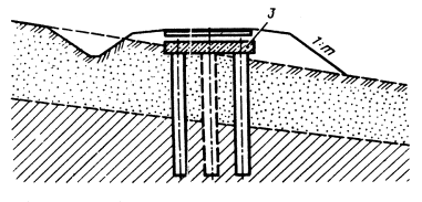 3.39. При допущении вязкого затухающего "обтекания" свай оползневым грунтом в низовых и верховых поддерживающих сооружениях к устройству соответственно дорожной одежды и "одевающей" стены следует приступать после того, как будет достигнуто 80% полного абсолютного смещения оползневого склона λti, рассчитанного по формуле (57). В противном случае необходимо предусматривать устройство на насыпях в пределах ширины оползневого склона сборных дорожных покрытий; при этом обнаруженные на поверхности насыпей трещины сдвига и растяжения должны быть забиты местным грунтом или заинъецированы твердеющим раствором; в верховых поддерживающих сооружениях следует предусматривать установку компенсаторов из легкосжимаемого и хорошо фильтрующего материала (например, из геотекстиля) по всей вертикальной поверхности контакта "одевающей" стены с оползневым грунтом.