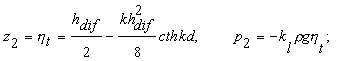 формулах для свободной волновой поверхности и волнового давления вместо глубины