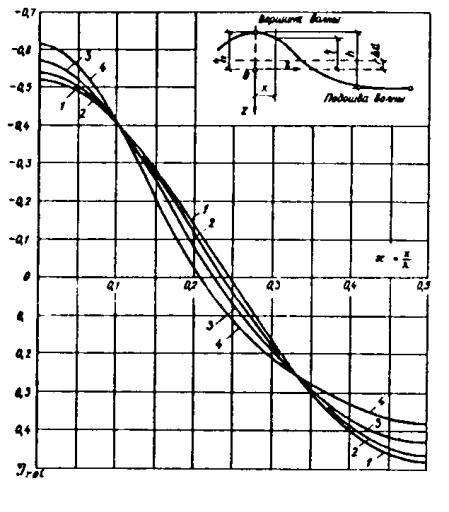 стоячих волн на вертикальную стену со стороны открытой акватории а - при гребне волны; б - при ложбине волны (с эпюрами взвешивающего волнового давления на берменные массивы) Рис. 2. Графики значения