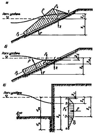 акватории (в расчетах устойчивости сооружения и прочности грунтов основания)
