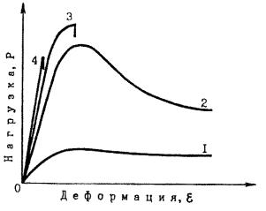 1, 2 - пластическое разрушение; 3 - хрупко-пластическое разрушение; 4 - хрупкое разрушение