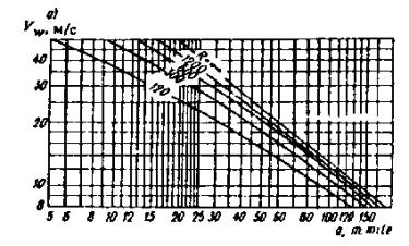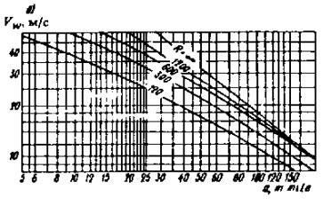 изобарами a, m.mile, и радиус кривизны изобар R, m.mile. Направление ветра