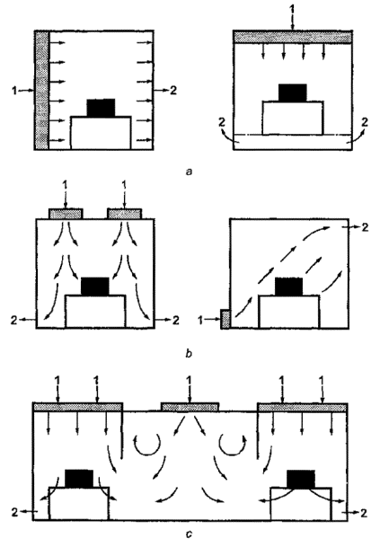 поступающий в чистую зону воздух смешивается с внутренним воздухом посредством