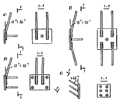 нормальными и наклонными анкерами а-в - с наклонными анкерами, приваренными внахлестку, и
