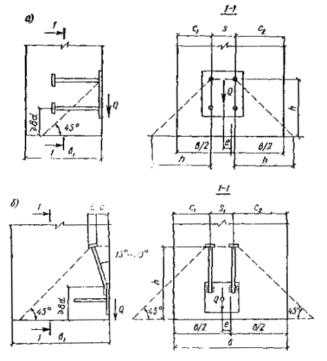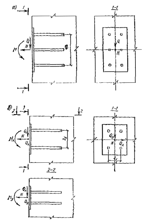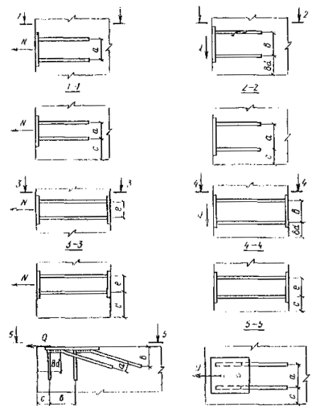 Закладные детали, изображенные на рис. 2, а-в, следует применять при действии на деталь сдвигающей силы