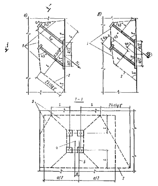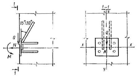 изображенную на рис. 2, г, - при действии отрывающей и сдвигающей сил, когда Qan>Nan/tg g. Рис. 1. Закладные детали с