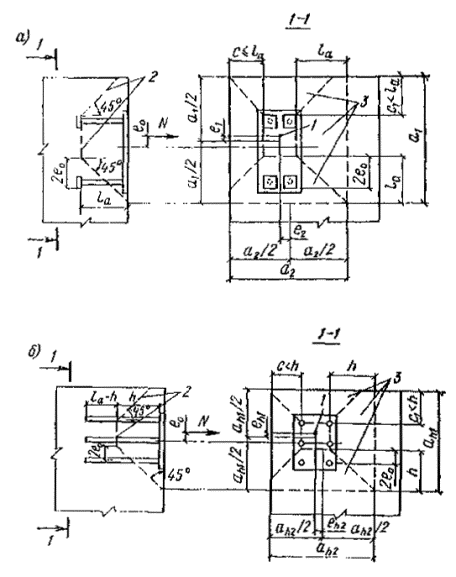 сечения наклонных анкеров; zx и zу - расстояния между крайними рядами нормальных анкеров,