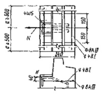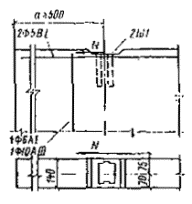 бетона растянутыми полосовыми анкерами (рис. 35) - по формуле (55); N¢ = 0; Q = 0,5×0,53(325 + 110)140 = 16100 H. Продельное усилие на