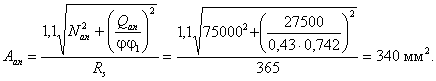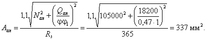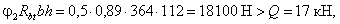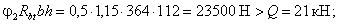 предельное усилие Q будет равно: Q = 1,3×1×235×90×0,715 + 0,3×38000 = 19700 + 11400 = 31100 Н. 3. По прочности на смятие бетона