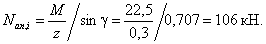 усилия в наиболее напряженном полосовом анкере: 1-й случай. Предельное усилие (при е0