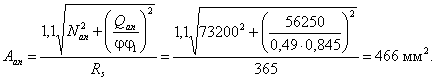 площадь поперечного сечения наиболее напряженного нормального анкера,