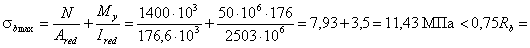 2-й случай. Предельное усилие (при е0 = 15 мм) принимаем: Q =