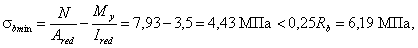 Расчетные сопротивления бетона растяжению и сжатию Rbt и Rb вводятся в расчет закладных