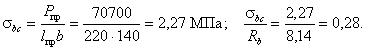 бетона с учетом соответствующих коэффициентов условий работы бетона равны: