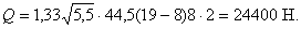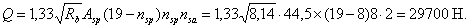 расчетным значениям: для 1-го случая Q =