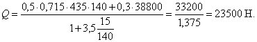 детали, тогда по формуле (55) предельное усилие Q равно: Q = 0,5×0,715×435×140 + 0,3×38000 = 21800 + 11400 = 33200