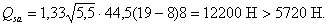 Поскольку Qsa = 5720 H < 23200 H, расчет по прочности